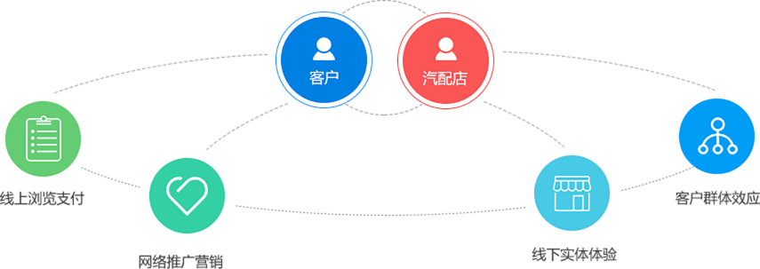 针对当下汽配电商行业的痛点和传统4S店销售模式的优势,以“B2B2C+O2O”的理念建立了由“PC+APP+WAP+微信端”组合的汽车电商全渠道生态体系。